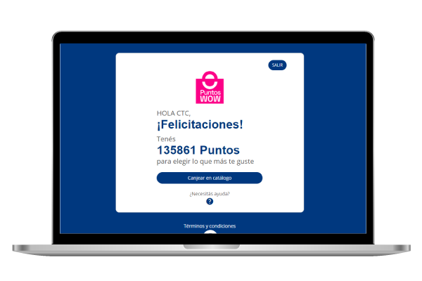 Implementamos una plataforma de fácil acceso para el canje de puntos por Gift Cards y vouchers de gastronomía y supermercados.